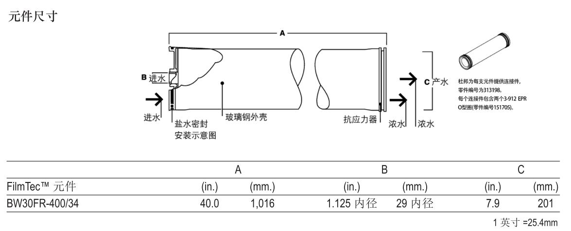 ● 膜元件配合公稱內(nèi)徑為8英寸(203mm)的壓力容器