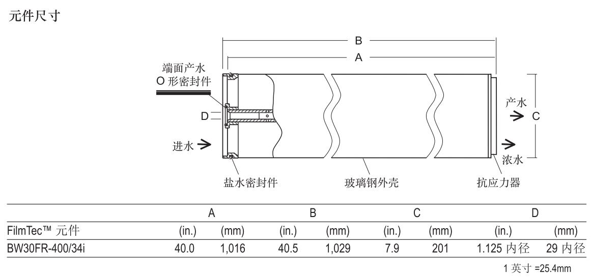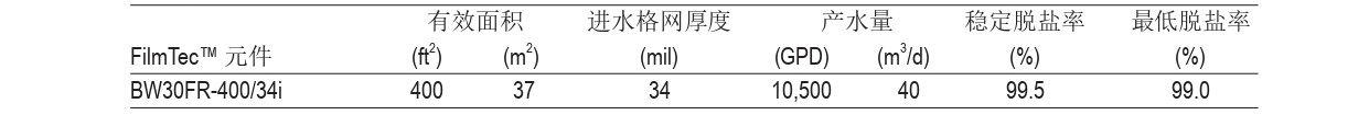 FilmTec™ BW30FR-400/34i 是一款適用于處理高污染水源、同時具有抗污染性、高脫鹽率和高產(chǎn)水量的抗污染膜元件。