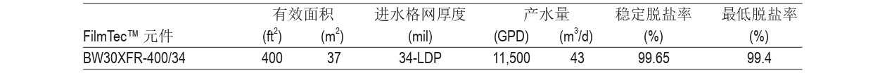 FilmTec™ BW30XFR-400/34 元件經(jīng)證明,具有優(yōu)異的性能:
